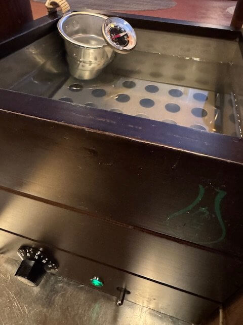 酒燗器! 2026年2月28日 最終更新日時 : 2026年2月28日 楜澤 裕司 店主のくるぽんです。2月28日の土曜日です。 今まで小さい酒燗器を使っていましたが大きな酒燗器に変わりました。実はお取引のある酒屋さんから「使ってない酒燗器あるけど使う?」とありがたいお言葉。と言う事で、大きな酒燗器を譲り受けました。ありがとうございます。早速大活躍です。これで燗酒たくさん注文頂いても大丈夫です!!(笑) 2月も最終日。本日キャンセルあったのでお席ございます!皆様のご予約・ご来店お待ちしております。 関連 FacebookXBlueskyCopy